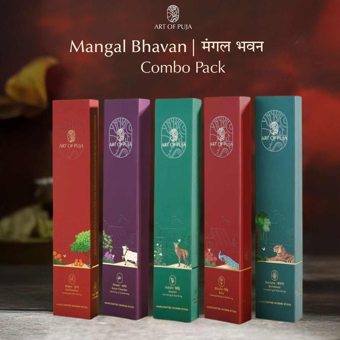 Mangal Bhavan Combo (Pack of 5) | Sai Darshan, Kesar Chandan, Kasturi, Rose & Rainforest
