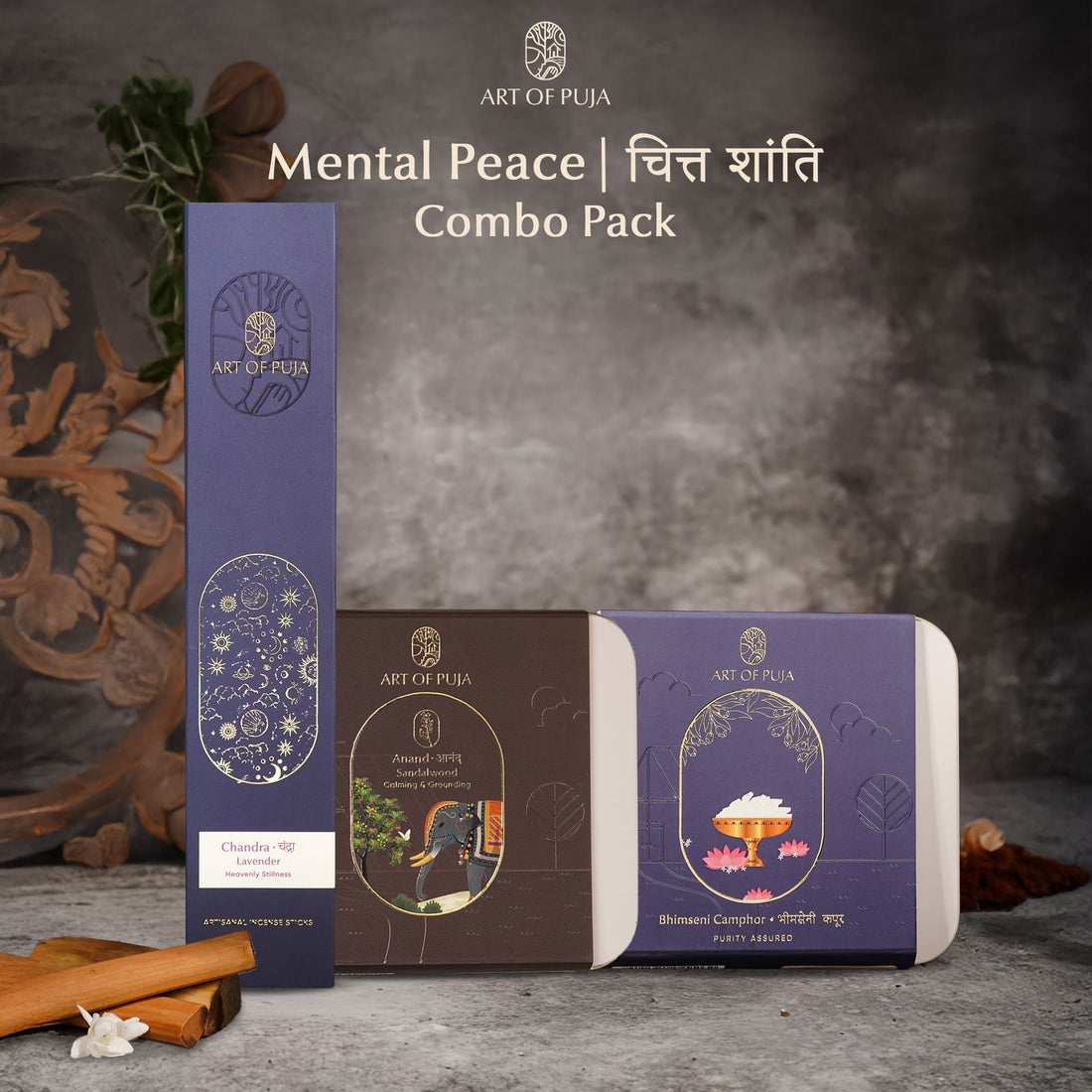 Mental Peace Combo Pack – Lavender Incense, Sandalwood Bambooless Sticks & Bhimseni Camphor