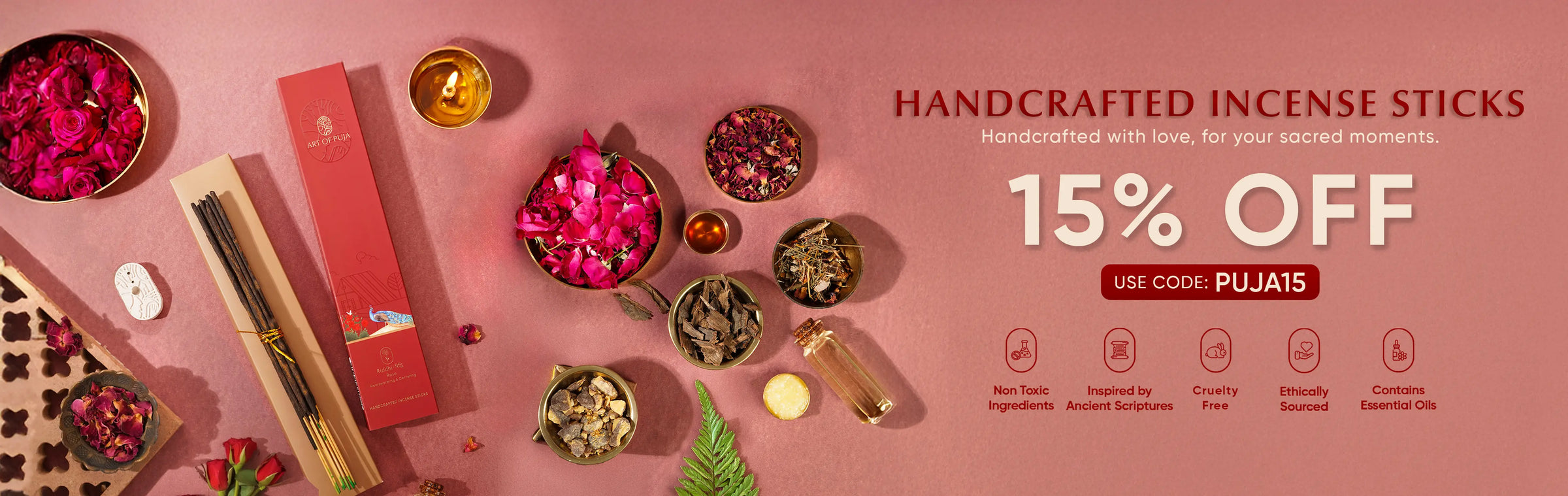 Art of Puja presents handcrafted jasmine incense sticks, where each stick is a fragrant masterpiece,...