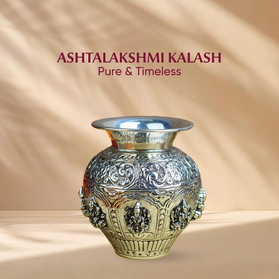 Ashtalakshmi Kalash – 100% Pure Silver Finish | Handcrafted Puja Kalash (5.6 Inch)