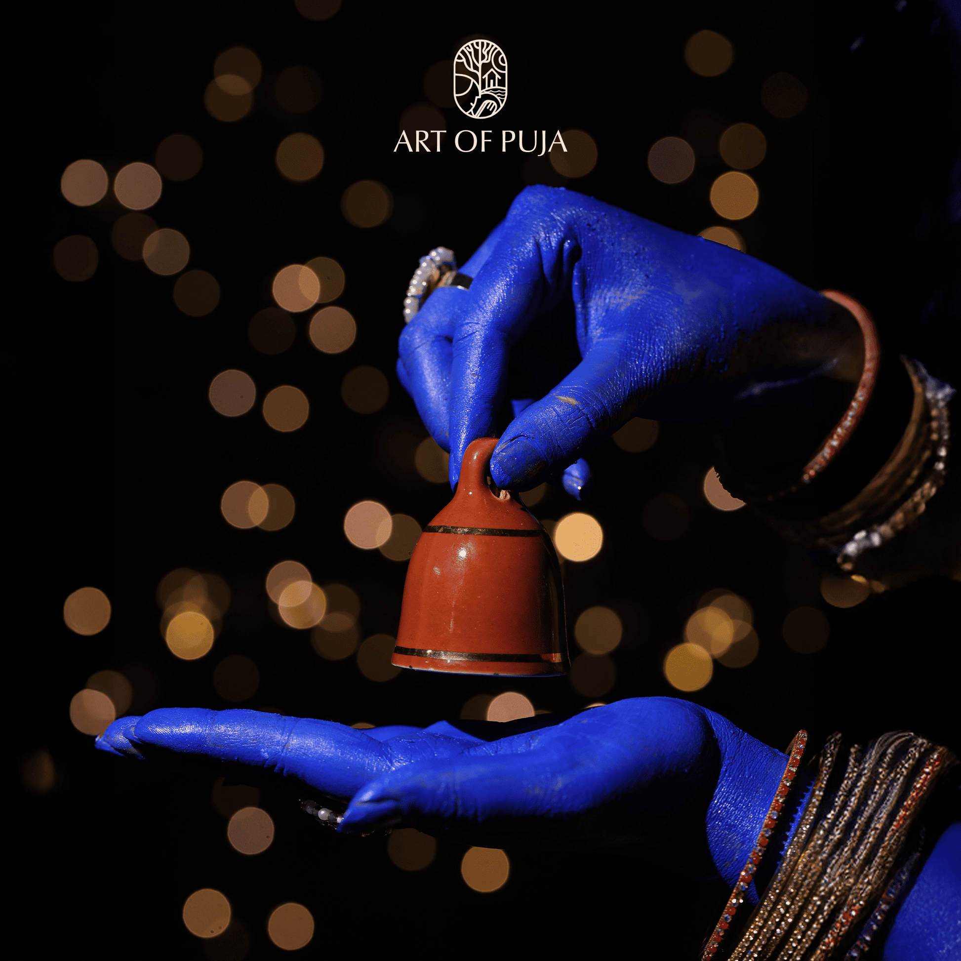 Traditionally, the sound of the ghanti is said to dispel negativity and awaken positivity, creating an atmosphere fit for devotion and celebration. This ceramic puja bell is not just an accessory—it is a symbol of purity and arrival, designed to echo the essence of AAGMAN: welcoming sacred light, joy, and abundance into your space.