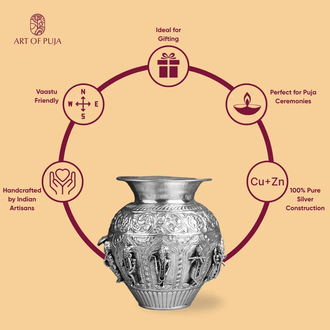 Vishnu Dashavatar Kalash – Ten Incarnations of Vishnu - Brass - Silver Antique Polish