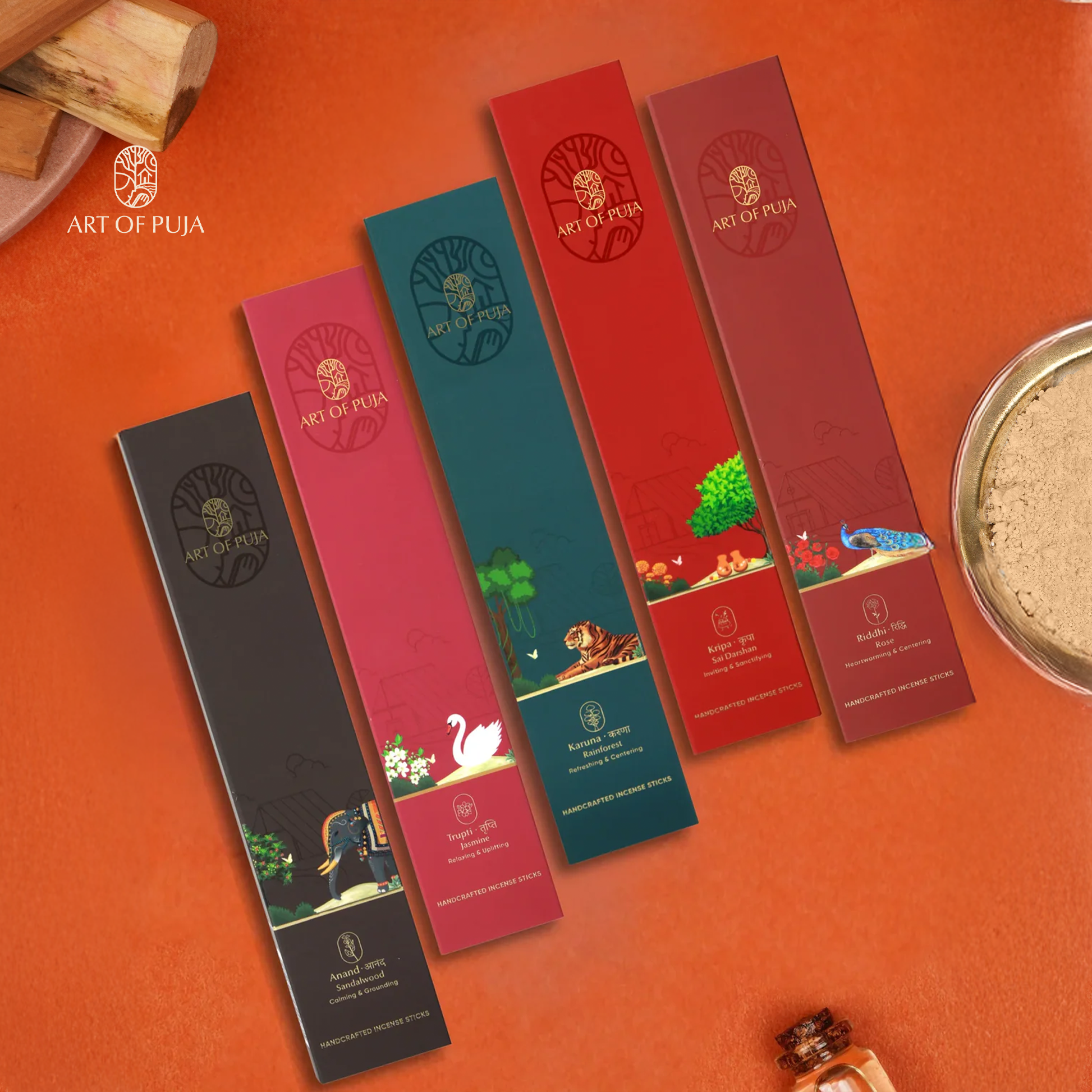 Whether you're entering a quiet meditation, performing your daily puja, or winding down after a long day, this combo helps you connect with your inner self and divine energies around you.
