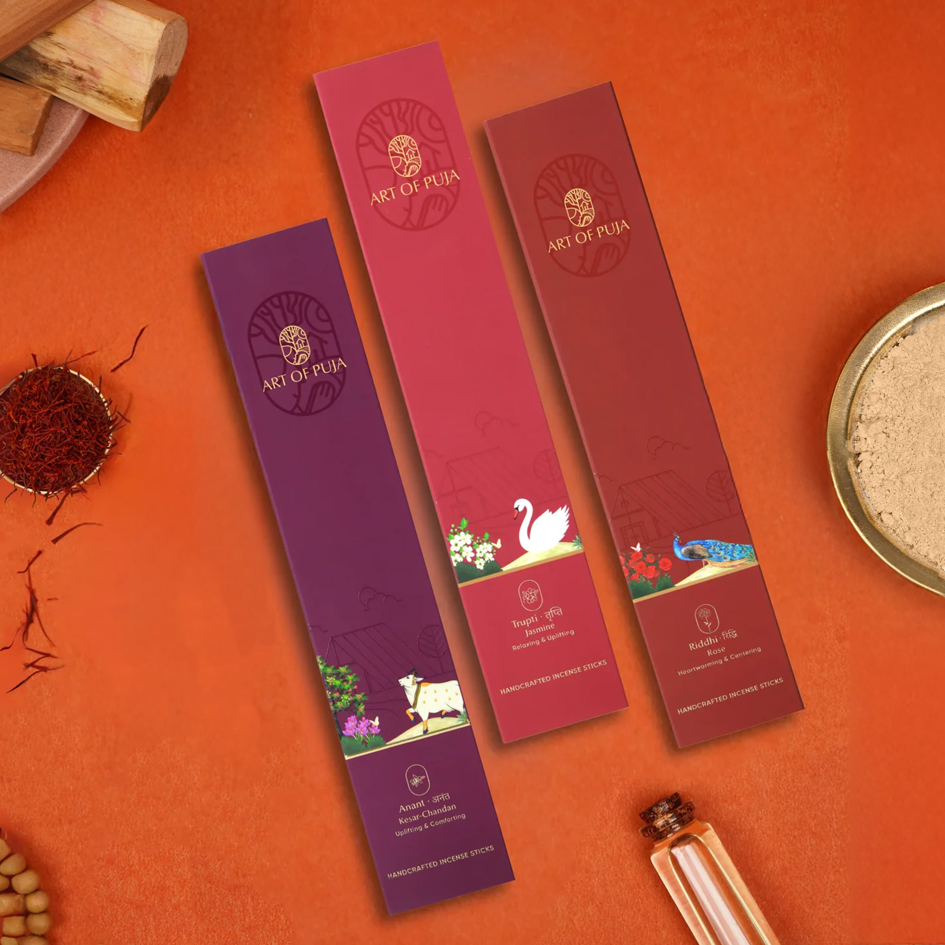 Evening Ritual Combo (Pack of 3) | Riddhi (Rose), Trupti (Jasmine) & Anant (Kesar-Chandan)