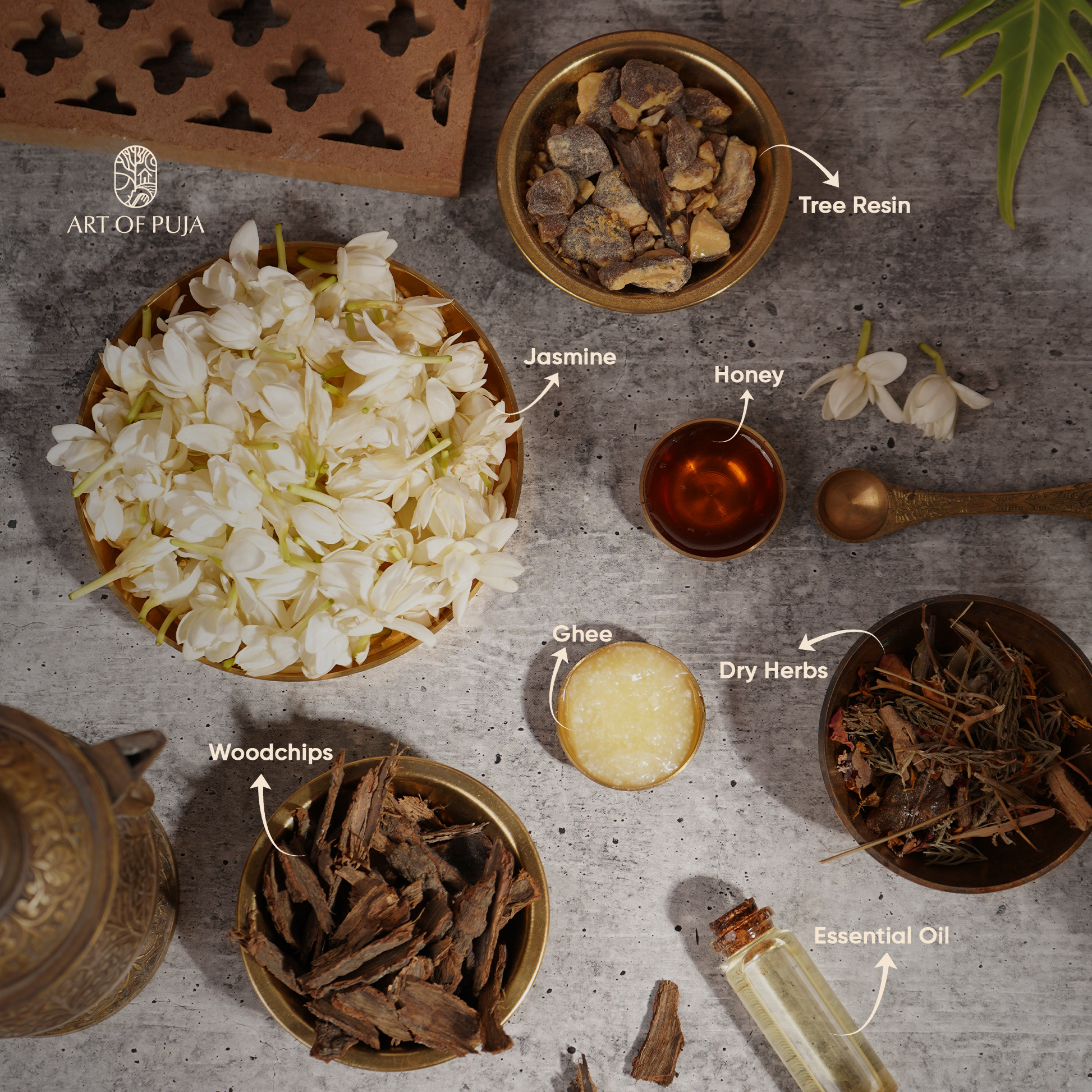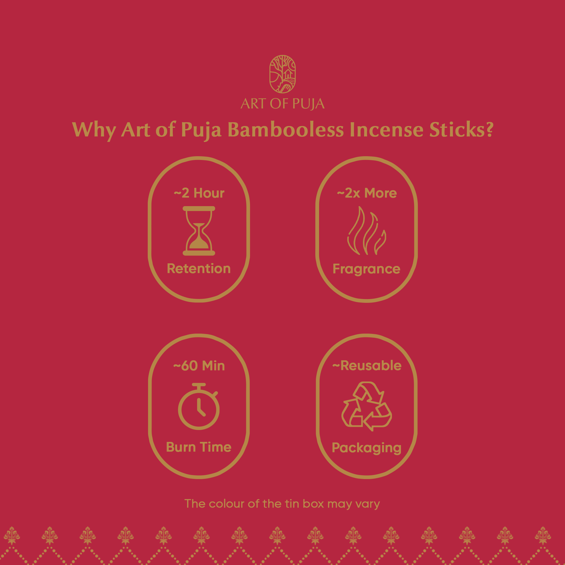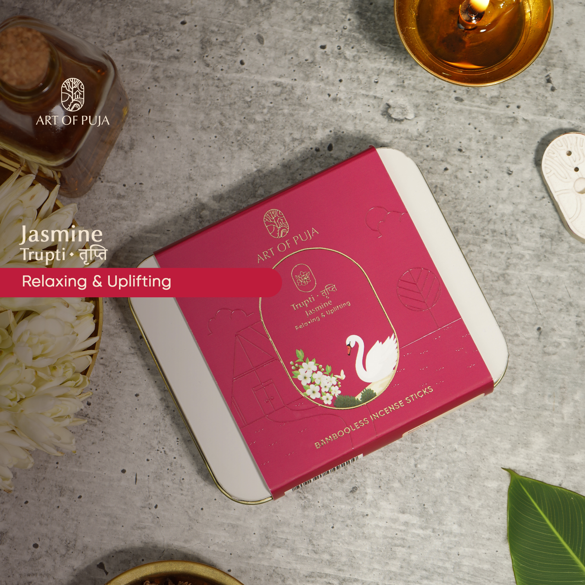 Art of Puja presents bambooless Jasmine incense sticks, where each stick is a fragrant masterpiece, imbued with the essence of purity and grace. Jasmine, a revered flower in ancient traditions, is renowned for its ability to soothe the mind and awaken the senses. Breathe in the delicate floral notes and allow them to foster a sacred communion between your inner spirit and the higher power. Experience a profound sense of tranquility as your spirit connects with something greater than yourself. Indulge in this serene magic, and let the worries of the world melt away, replaced by a sense of peace and harmony.