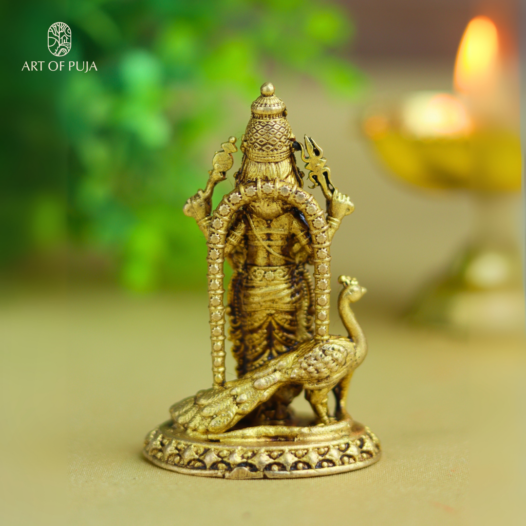 Brass Kartikeya Idol – Lord Murugan with Peacock | Symbol of Power & Wisdom