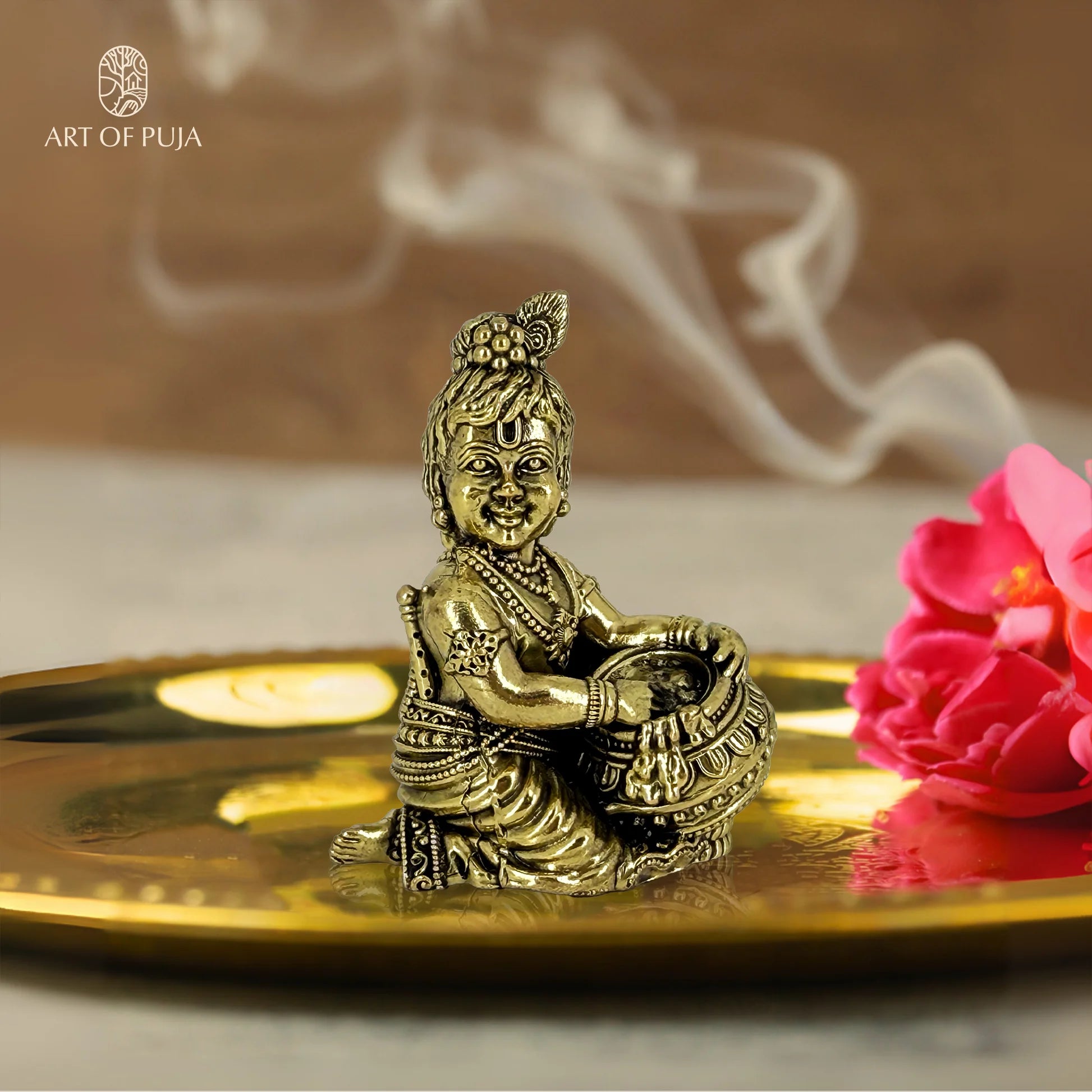 Brass Laddu Gopal Idol β Bal Krishna with Butter Pot, Symbol of Innocence, Joy & Divine Love