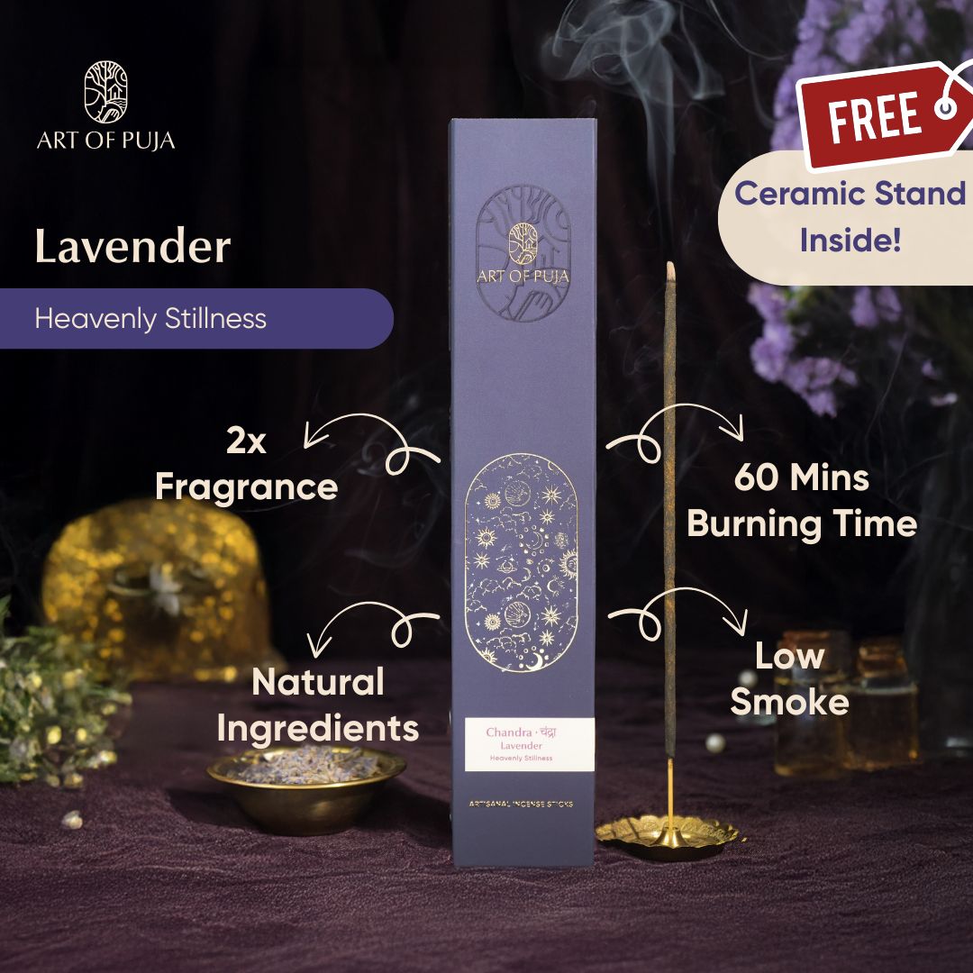 Commence a cosmic journey with Chandra, our lavender incense sticks, inspired by the serene glow of the moon. This ethereal fragrance is a celestial blend of lavender, meticulously crafted to evoke heavenly stillness. As the smoke ascends, it carries with it the calming essence of lavender fields bathed in moonlight, creating an ambiance of peace and relaxation. Experience the magic of lavender reimagined, as it intertwines with a lunar spell, offering a sensory escape that is both grounding and uplifting.