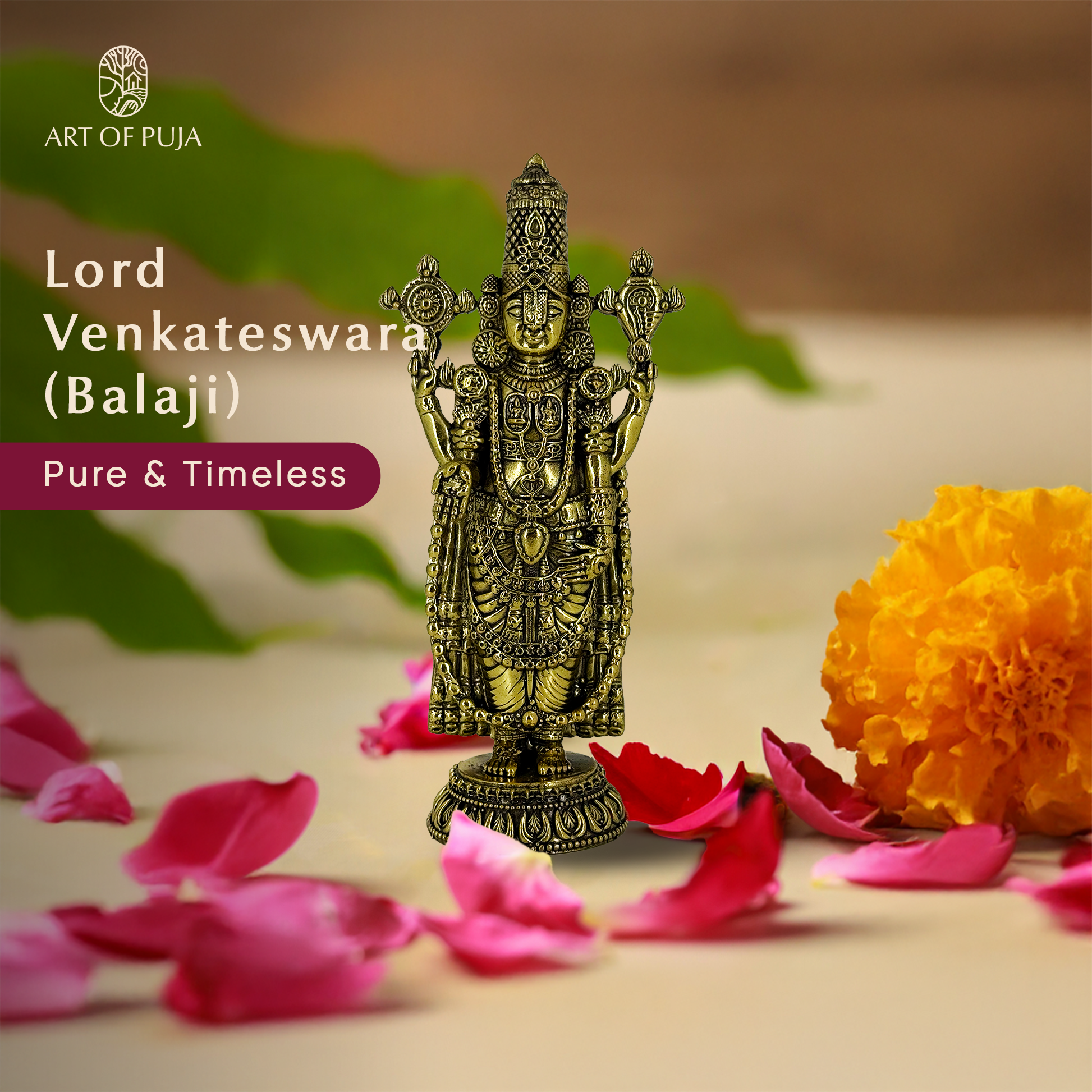 Bring home the divine blessings of Lord Venkateswara (Balaji) with this beautifully handcrafted 6.5-inch pure brass idol. Symbolizing prosperity, protection, and grace, this idol represents the supreme deity of Tirupati, worshipped as the Lord of Wealth and the protector of dharma.
