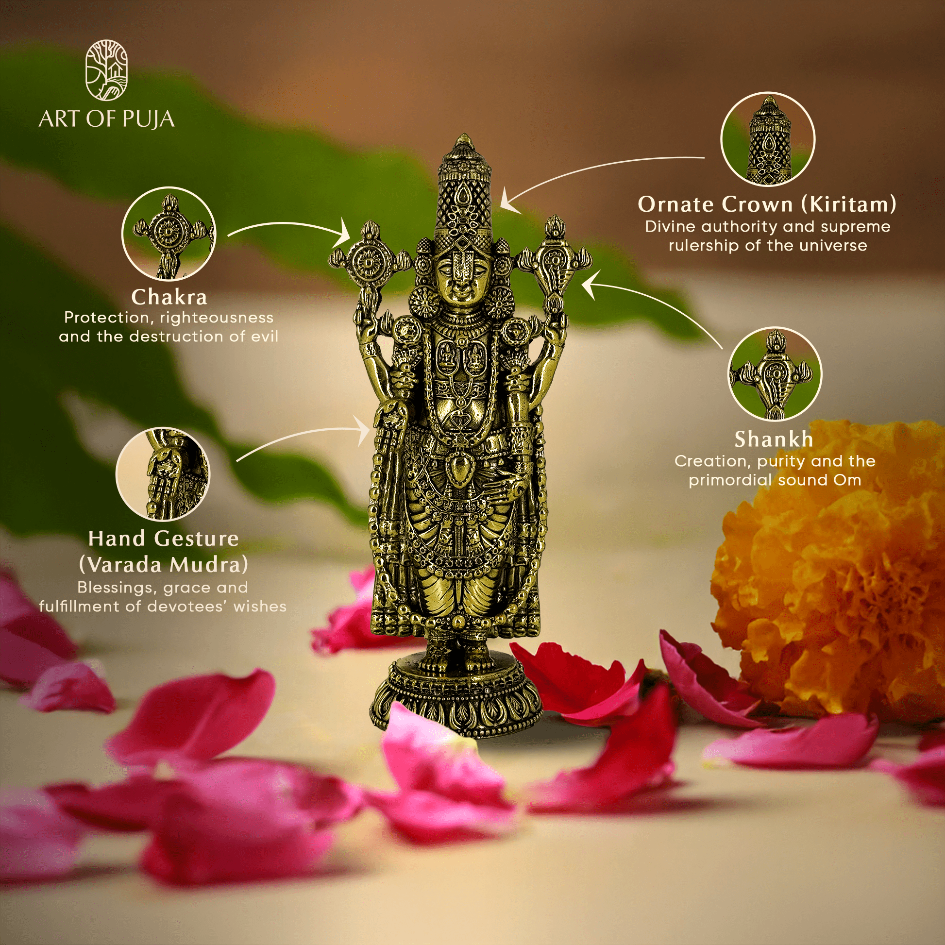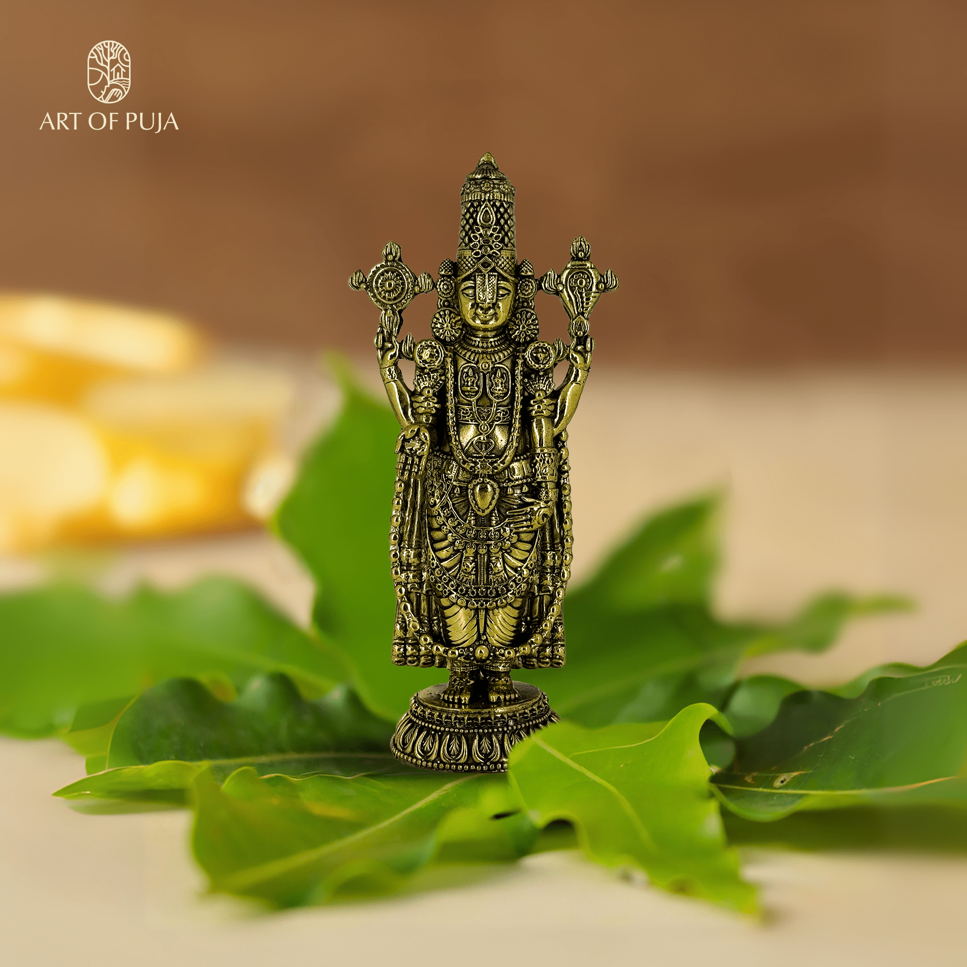 Lord Venkateswara (Tirupati Balaji) Brass Idol – 6.5 Inch | Handcrafted Murti for Mandir & Gifting