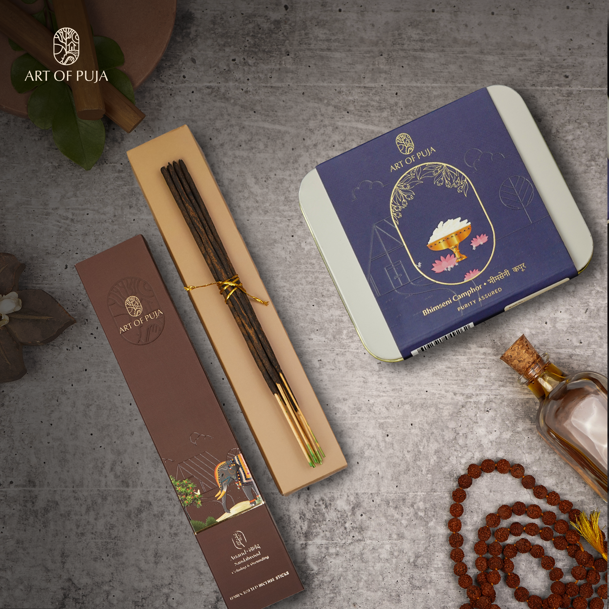 Bhimsen Camphor – Purifies energy & enhances mental clarity.