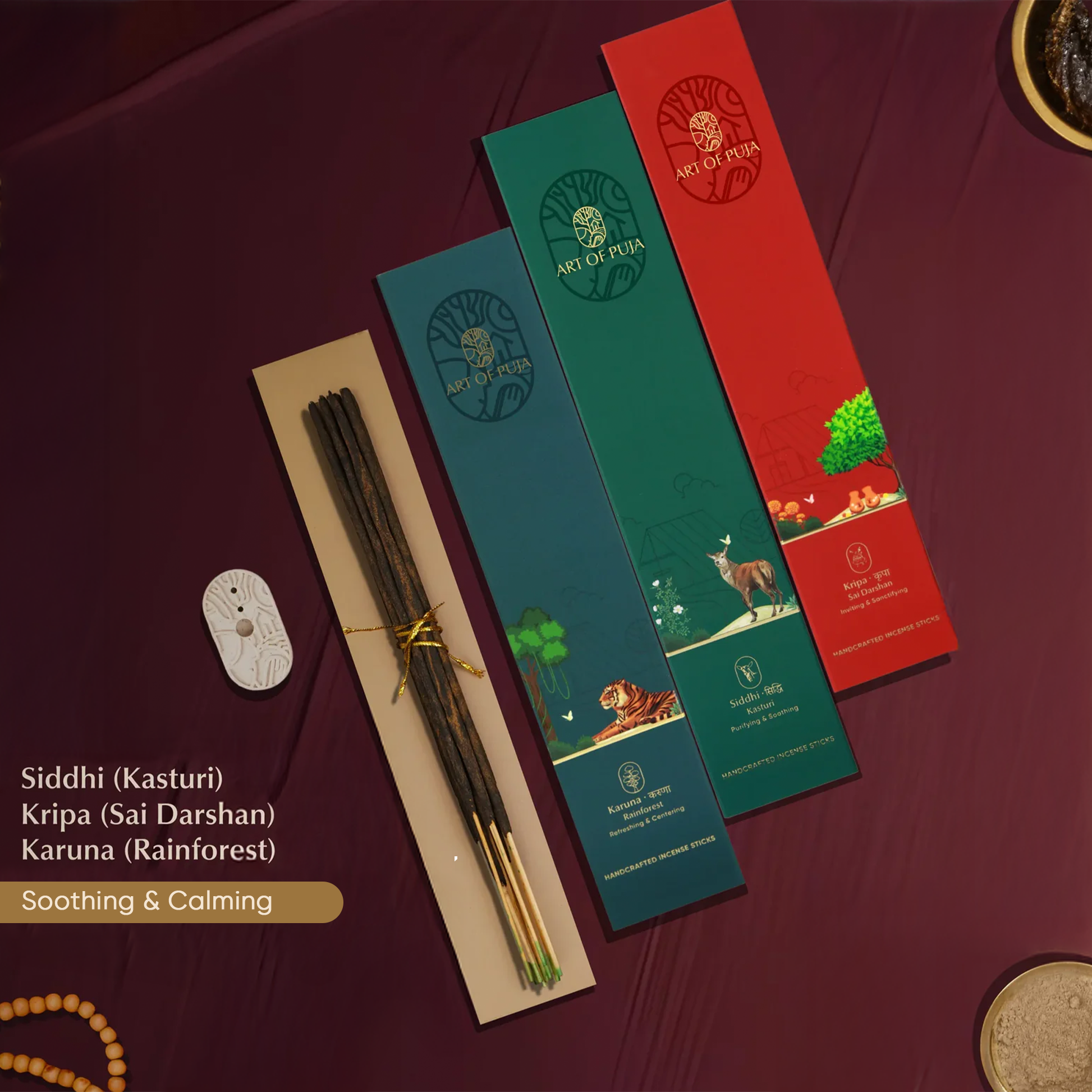 Morning Ritual Combo | Sai Darshan (Kripa), Kasturi (Siddhi) & Rainforest (Karuna)