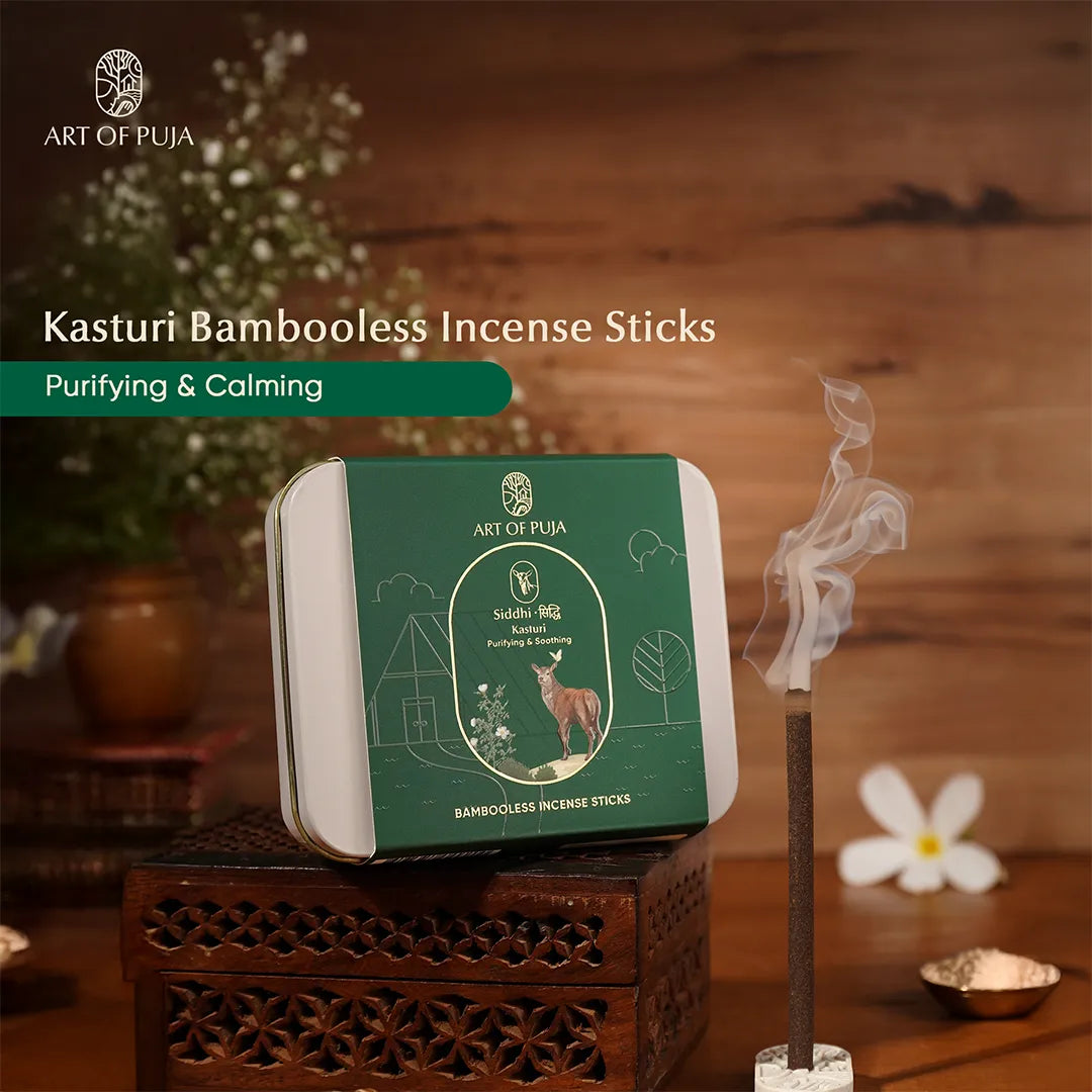 Nitya Puja Kit Combo Pack | Ghee Wicks, Pure Camphor & Kasturi Bamboo Incense Sticks for Daily Puja