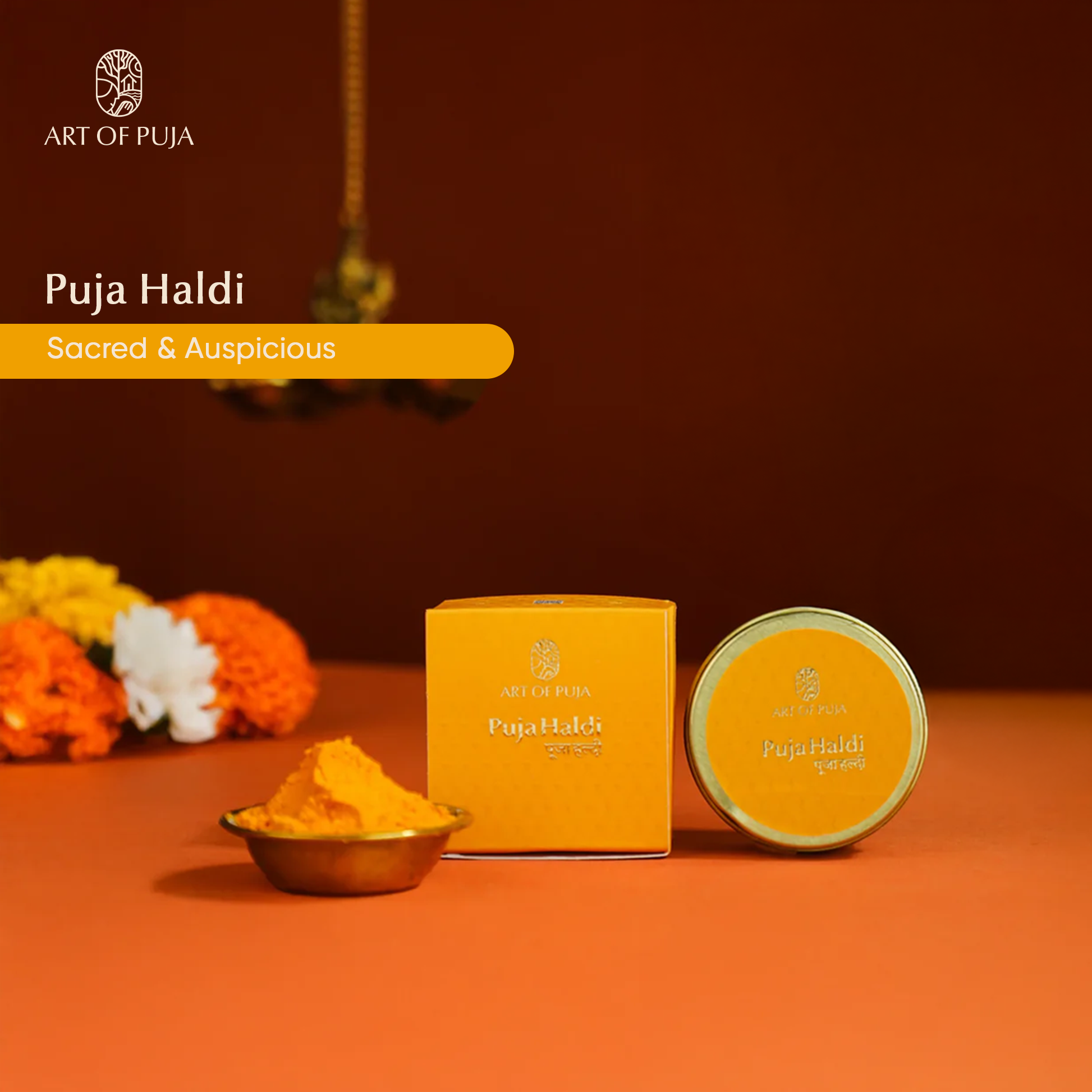 Puja Haldi (Turmeric) – Brings purity, positivity & blessings.