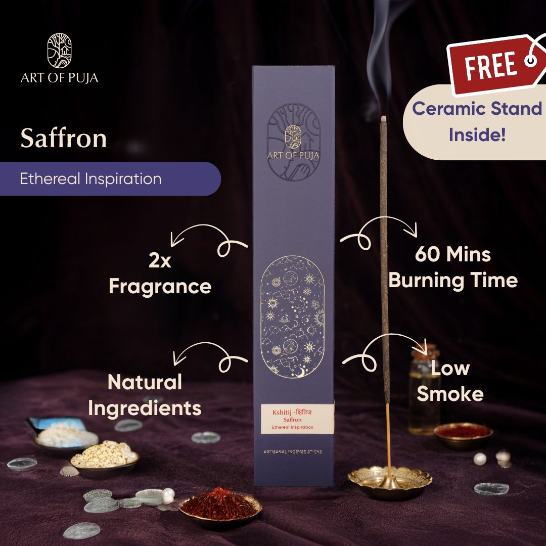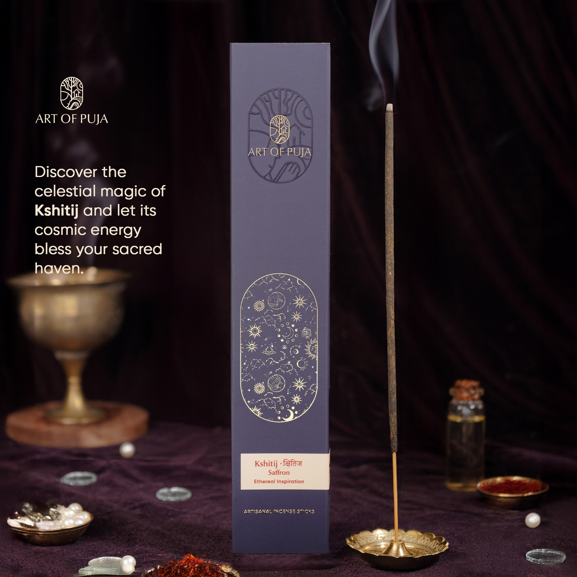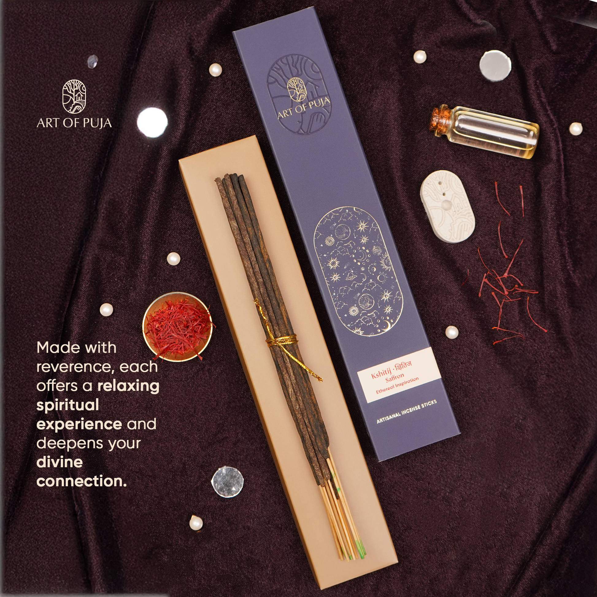 Kshitij, saffron-infused artisanal incense sticks capture the essence of dawn, where the sky meets the earth in a breathtaking fusion of colors. As the rich, warm notes of saffron fill your space, embrace optimism and vitality. Keeping ancient traditions in mind, these incense sticks offer a relaxing and spiritual experience. Let the enchanting aroma of saffron calm your mind and help you connect to the higher power. Discover the magic of Kshitij and let its radiant energy illuminate your world.
