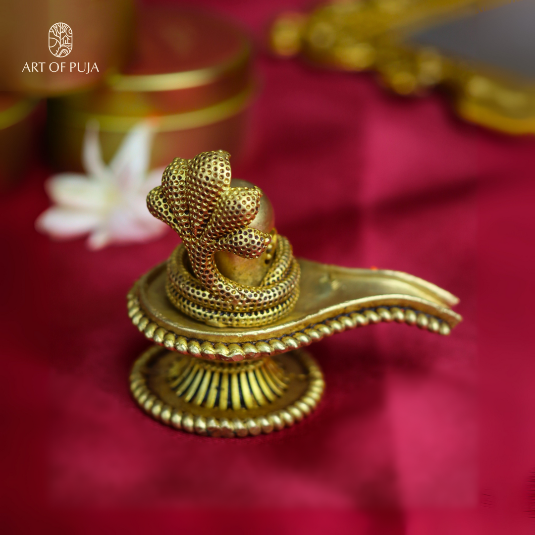 Brass Shivling with Panchmukhi Naga & – Symbol of Creation & Divine Energy (2 Inch)