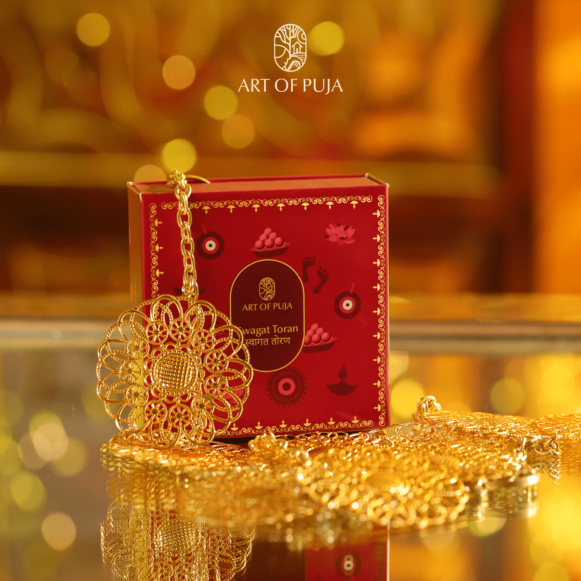 Durable, reusable, and designed with intricate detailing, this gold-polished toran is not just a decoration—it’s a blessing of light, positivity, and prosperity for your home.